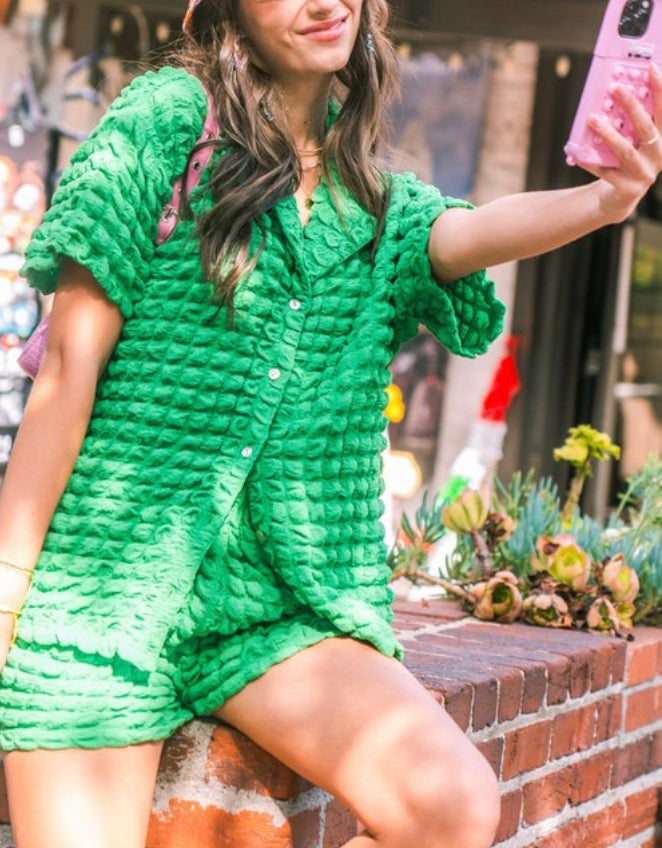 Kelly Green Puffy Shorts Set