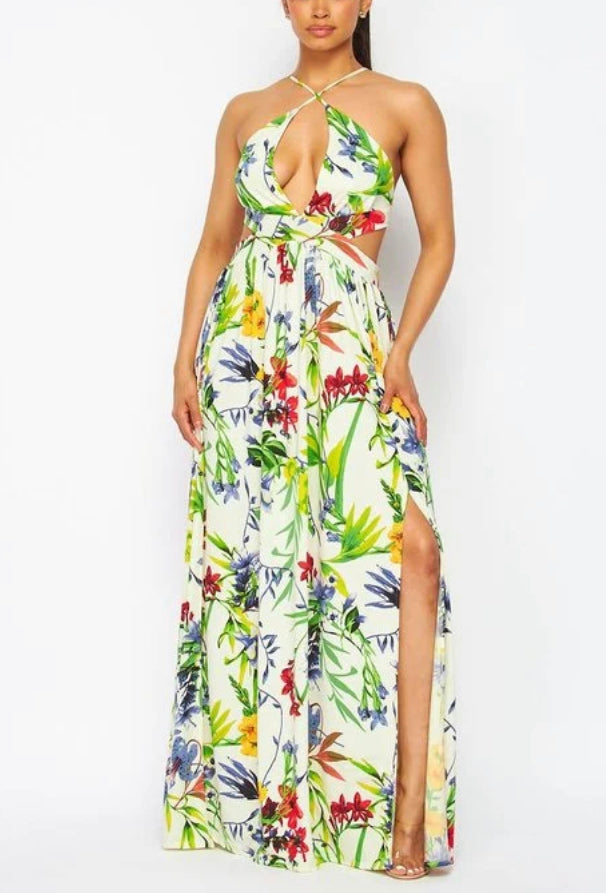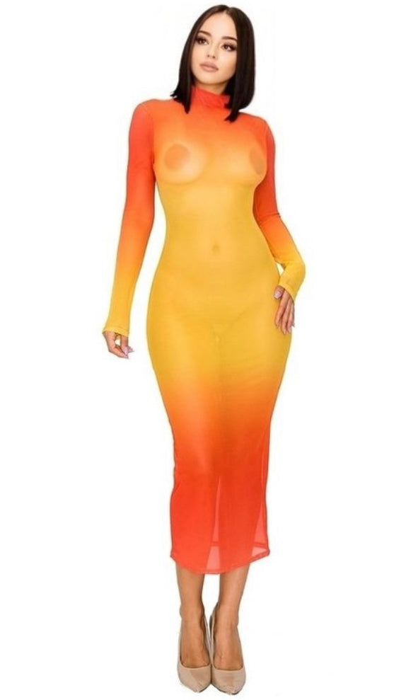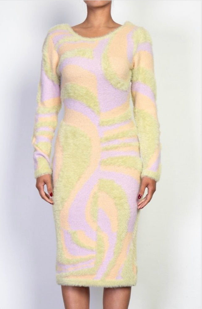Description: TRI-COLORED CUTOUT BACK FLUFFY DRESS